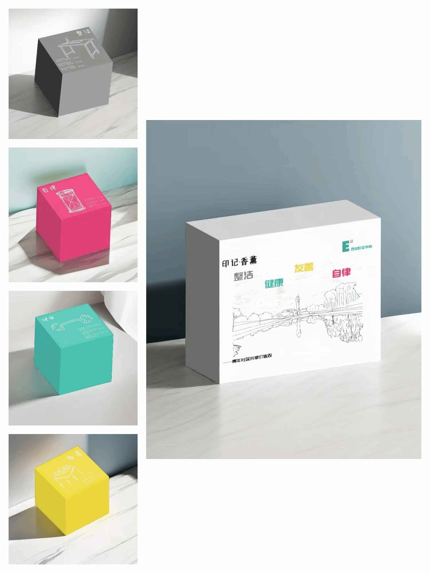 在“青年社区IP·共享价值观文创”赛道,各团队以青年社区文化为切入点,传递社区共享价值观。《Innoder(U宝)》设计了Xdea青年社区的IP形象,通过拟人化形象将社区理念与活动内容具象化;而《八大青年社区IP形象设计》则用丰富的视觉符号体系重塑社区文化认同,为青年社区的推广提供了新思路。