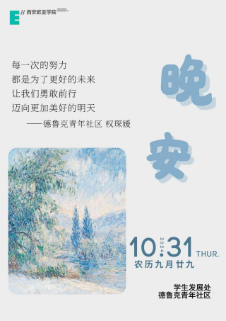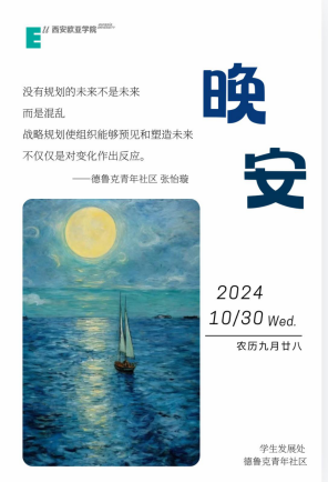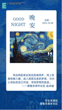 这些海报不仅展现了社区的多元魅力,也激发了我们对生活的热爱!一张张海报如同一束束光芒,照亮了社区的每一个角落,它们不仅是艺术的展现者,更是社区精神的传递者,让青年社区共享价值观深入人心。每一份作品的背后,都是辛勤付出与不懈追求,为大家的才华点赞。我们以海报来展示我们独特的社区风格,宣扬我们的社区文化与内核,欢迎德鲁克青年社区的成员们来投票!在未来,让我们再次用自己的奇思妙想装点夜晚,用热情温暖大家!期待在下一次的晚安海报比赛中看到更多优秀的作品!