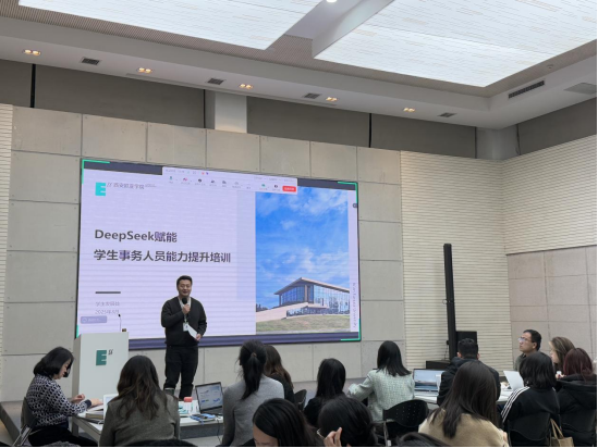 为不断提升欧亚学生事务人员职业能力和专业素养,推进学生事务工作专业化、智能化转型,学生发展处于3月31日举办《DeepSeek赋能学工队伍能力提升培训》。本次培训聚焦AI技术在日常学生管理中的应用,通过理论讲解、场景实操及交流研讨,助力学生事务人员掌握智能工具,以技术赋能学生管理与服务提质增效。