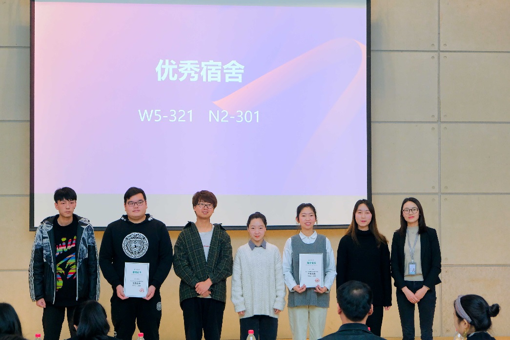典礼现场,对韩栋成、袁昊晟、刘杰等同学颁发了“优秀个人奖”,对刘坚、刘晓杰、霍泽宇等同学颁发了“优秀社区干部”对西五321宿舍和北二301宿舍颁发了“优秀宿舍”,对学生会项目中心等团体颁发了“优秀团队奖”。