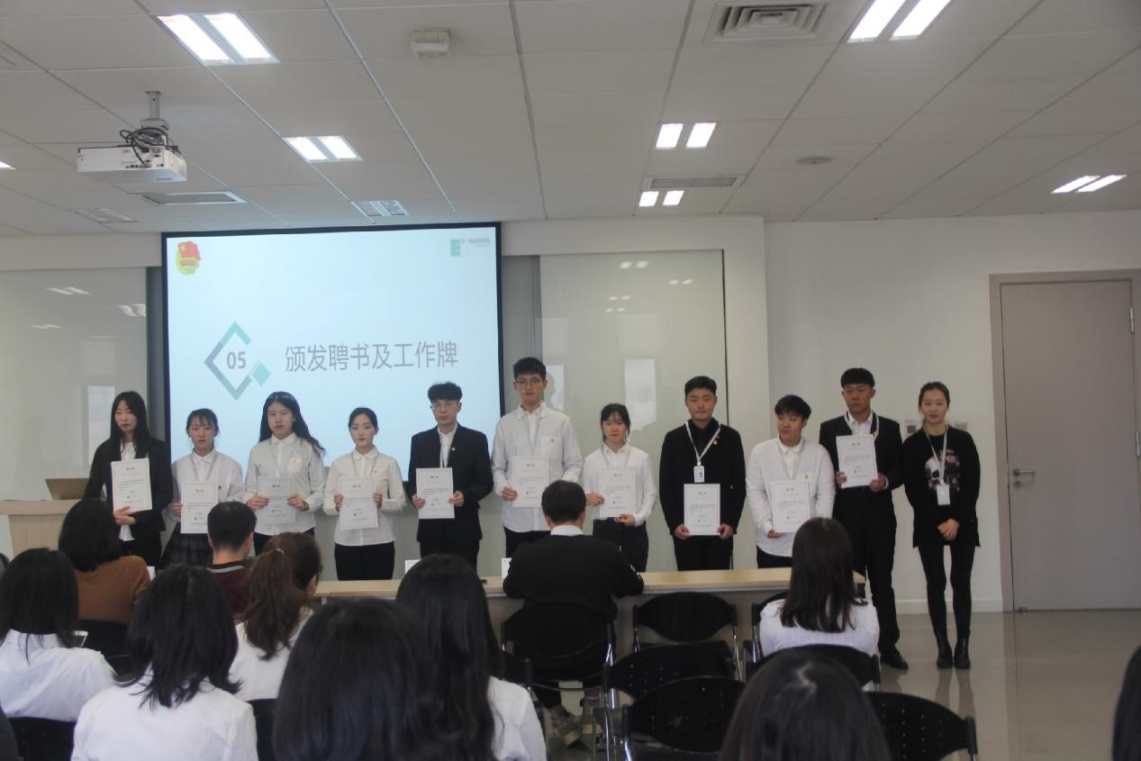 国际青年社区基层团委书记贾梦园同志为各部门部长颁发任命书及工作牌