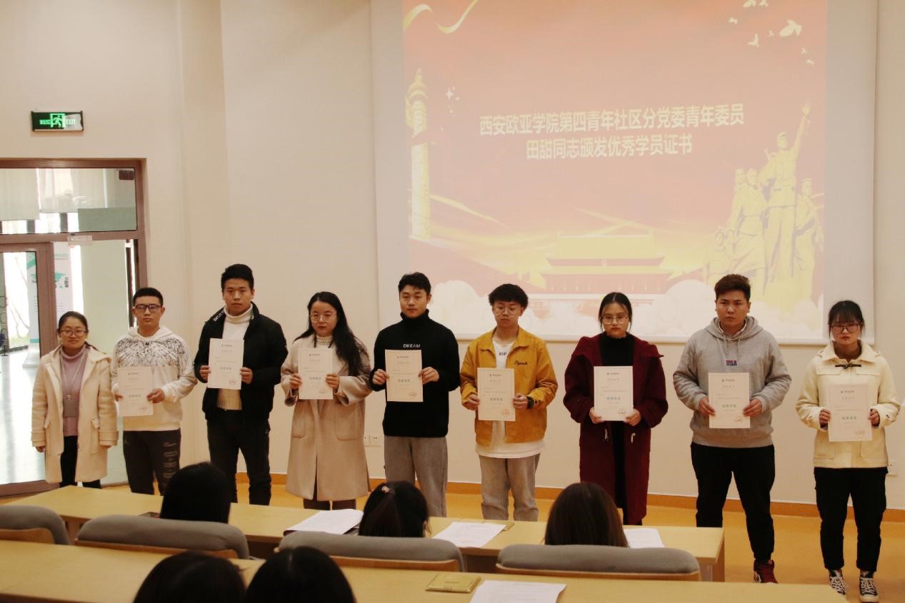 接着,第四青年社区分党委田甜同志为17名学员颁发优秀学员证书,并期待能在今后的学习与生活中看到优秀学员们更为突出的表现。