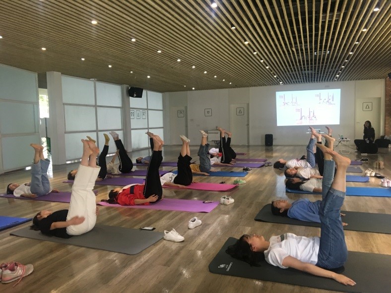 曾家敏学姐一步步的将同学们带入瑜伽的专属氛围
