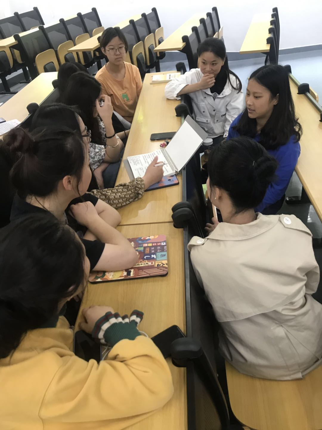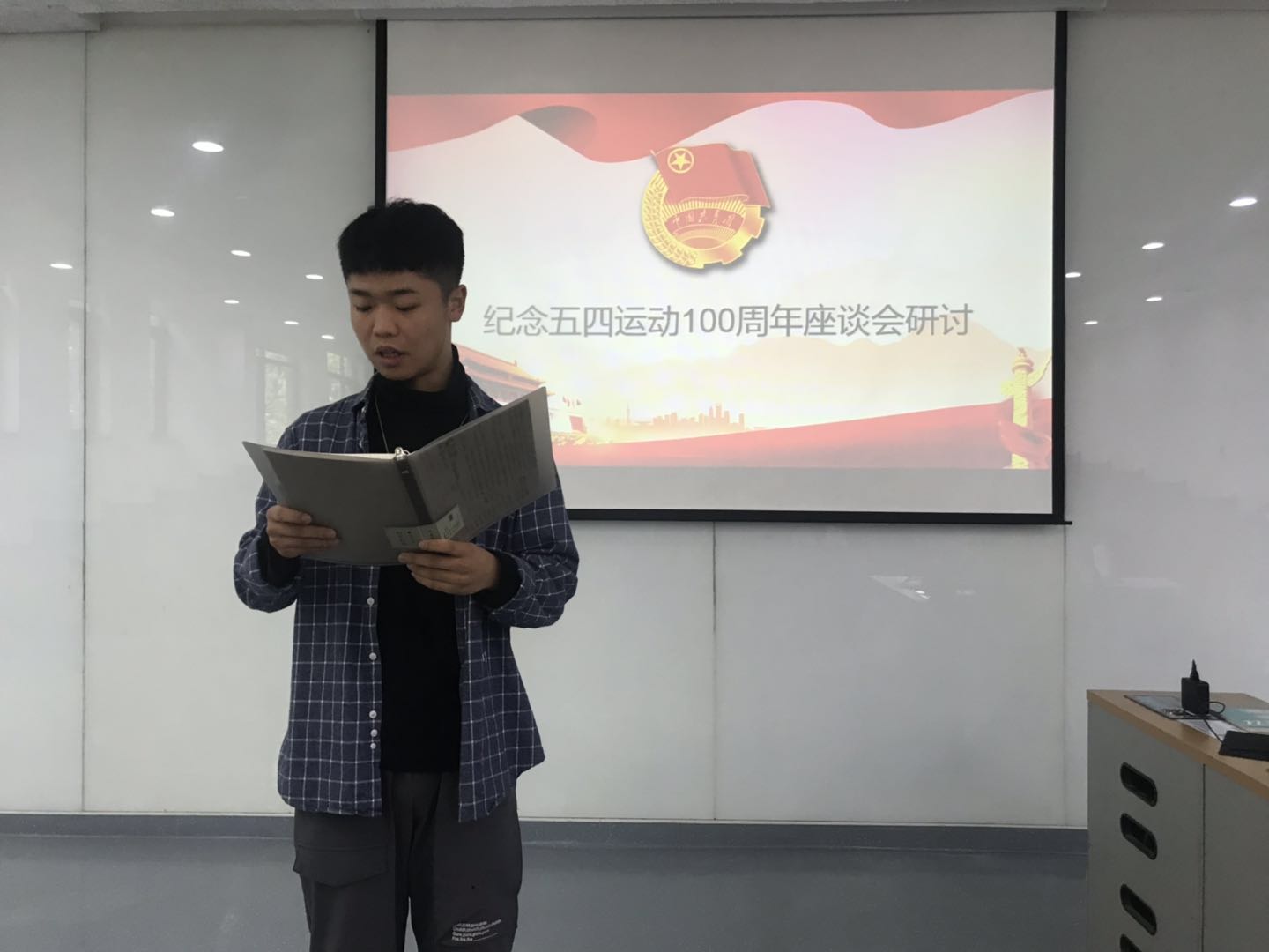 到场的团员青年在认真收听收看本次习近平总书记的讲话后进行小组研讨,集中讨论自己的收获和感悟。牢记历史,纪念五四运动,学习并传承发扬五四精神。