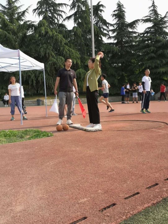 沉重的实心球,带着希望在空中划过一道完美的弧线,它落地的瞬间代表着李娜成功跻身前三。因为实心球的物资的局限性,李娜表示平常没有什么机会专门训练,但平常自己喜欢举举哑铃,所以对于力量的把控也有自己的心得。“在得知自己第三名时挺惊讶的,虽然和第一第二名扔的距离相比有些差距,但也尽自己最大的努力了,所以还是很满意的。”李娜说。