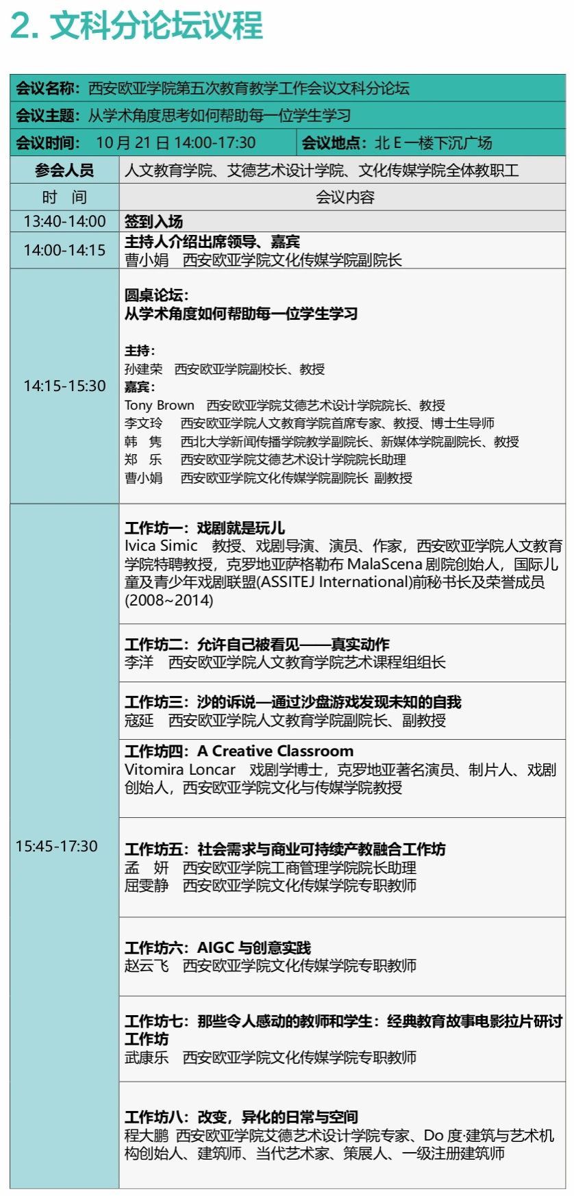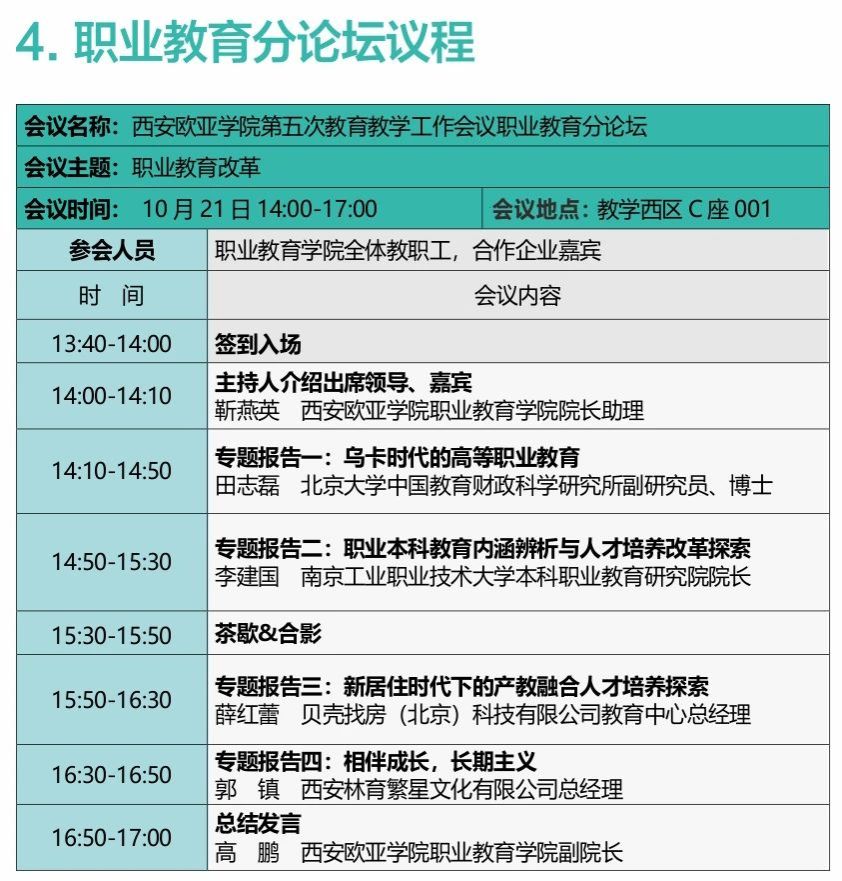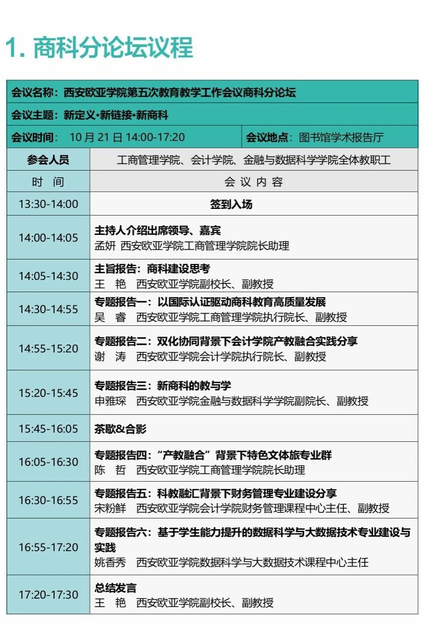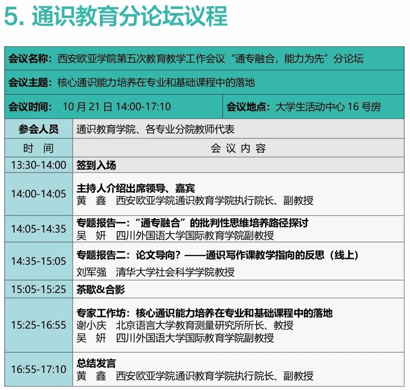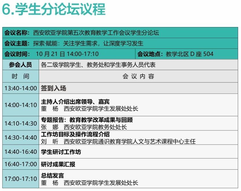 2023年10月21日至22日,西安欧亚学院第五次教育教学工作会议即将举行。本次会议以“深耕以学生为中心育人体系,全面提升应用型人才培养质量”为主题,总结、分享、交流学校教育教学改革的经验,深入分析存在的问题,筹划、部署、研讨下一阶段教学工作改革的思路。
