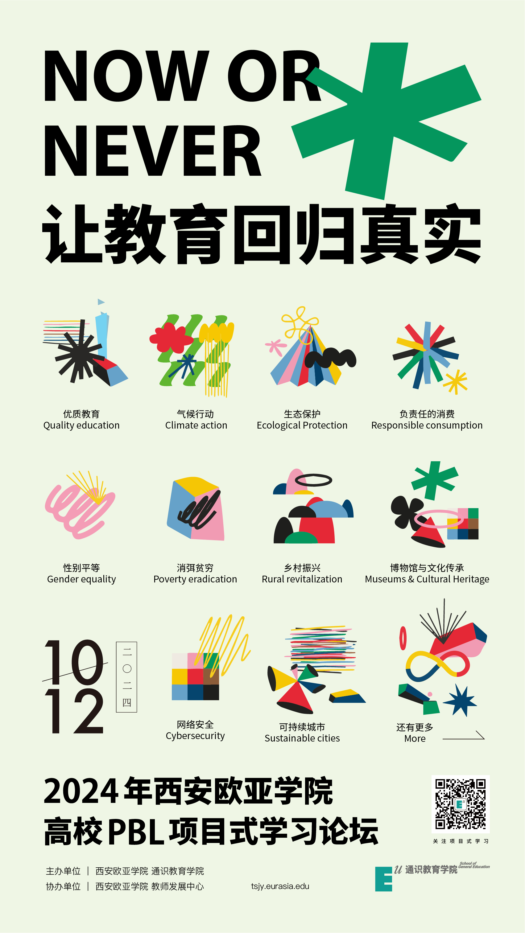 2024年10月12日,西安欧亚学院通识教育学院将召开高校PBL项目式学习论坛,旨在促进高校PBL项目式学习的科学运行,通过分享和交流共同探讨PBL项目式学习在高等教育中的有效应用模式。本次论坛拟邀请国内外著名PBL项目式学习研究专家学者、一线教师及教育工作者,就PBL项目式学习在高校教学、学生工作及其他事务过程的实施与设计展开探讨、交流。