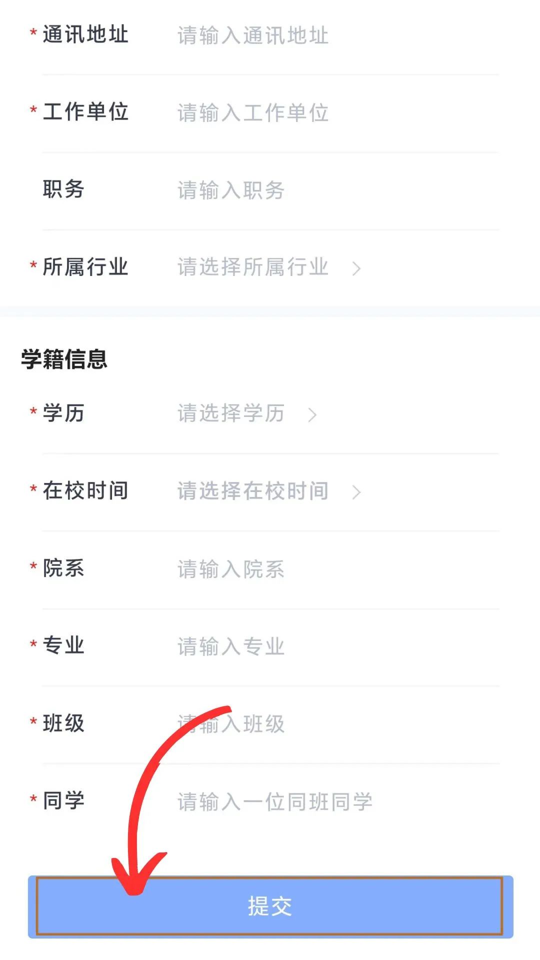 5.填写正确的注册信息,并点击【提交】。
