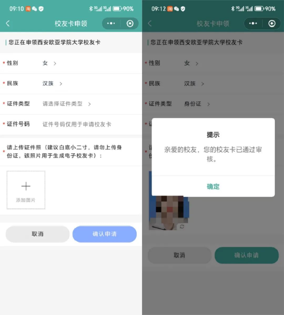 10.审核通过后即可查看校友卡。