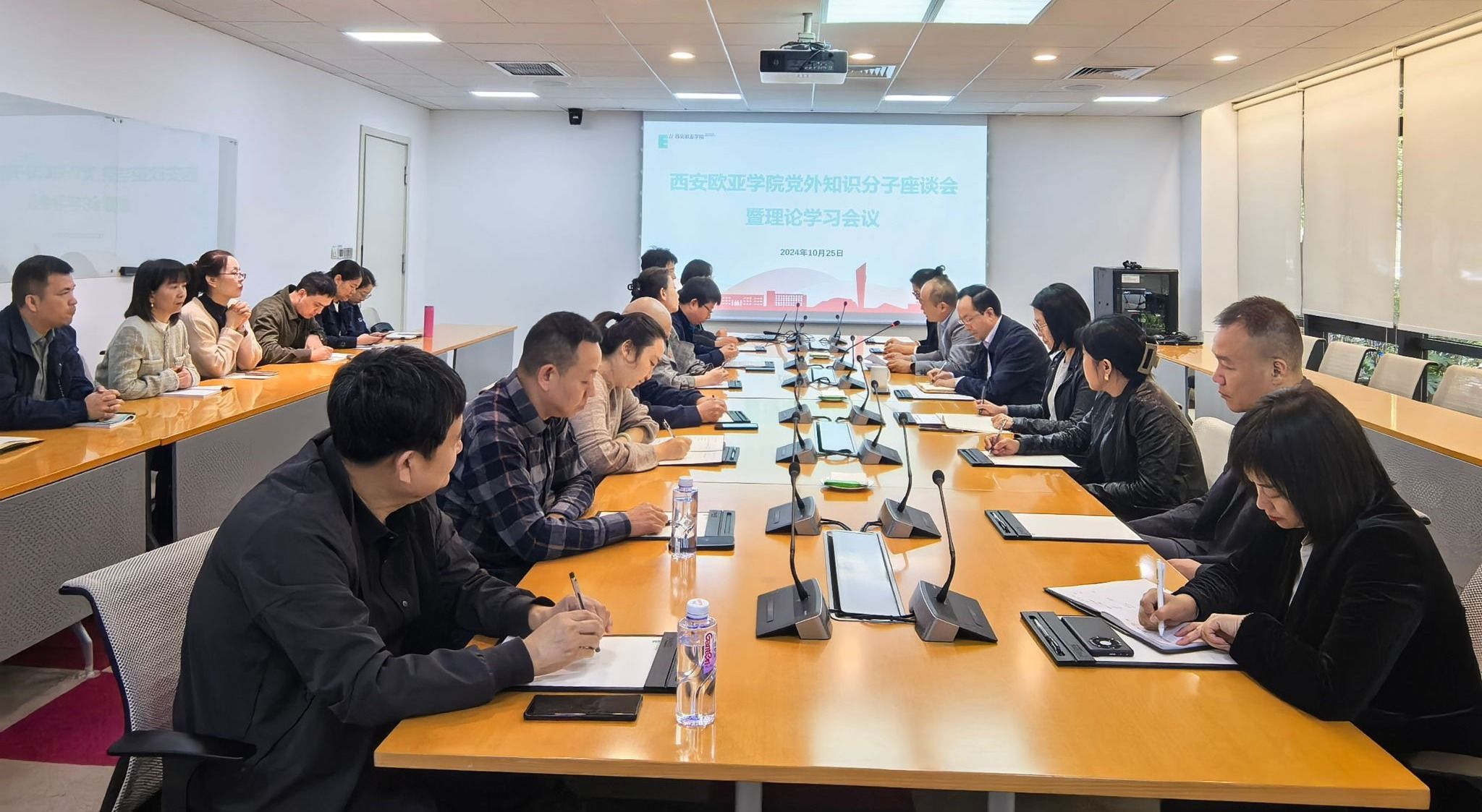为深入贯彻落实党的二十届三中全会精神,加强党外知识分子思想政治引领,推动学校教育高质量内涵式发展,10月25日,学校党委召开党外知识分子座谈会暨理论学习会议。党委书记赵国华,党委委员、纪委委员,统战部、宣传部、组织部、教师工作部、学生工作部,学校各级人大代表、政协委员,各民主党派、无党派人士、党外知识分子代表共20余人参加了会议。党委组织部部长赖志彬主持会议.召开党外知识分子座谈会暨理论学习会议会议首先传达上级有关文件精神和学校贯彻落实党的二十届三中全会精神要求,...