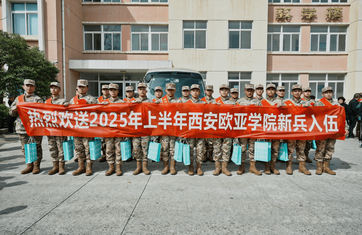 春风拂面催征人,热血青年赴军营。3月16日下午2时,西安市雁塔区人武部在新兵役前教育训练基地,为2025年上半年预定新兵举行庄严欢送仪式。西安欧亚学院22名应征入伍学子身着戎装、胸佩红花,在母校师长的深情寄语中,肩负卫国戍边的神圣使命,将踏上荣耀军旅征程。雁塔区2025年上半年新兵入伍欢送会仪式现场西安欧亚学院校党委办公室主任赖志彬、学生发展处副处长张成、后勤集团副总经理强建旗、文化传媒学院党总支副书记左伟、征兵工作站副站长李涛、...