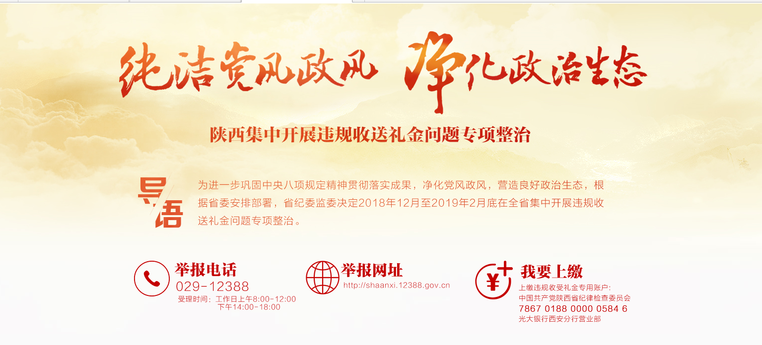 为进一步巩固中央八项规定精神贯彻落实成果,净化党风政风,营造良好政治生态,根据省委安排部署,省纪委决定2018年12月至2019年2月底在全省集中开展违规收送礼金问题专项整治。 省纪委上缴礼金统一账户、举报电话...
