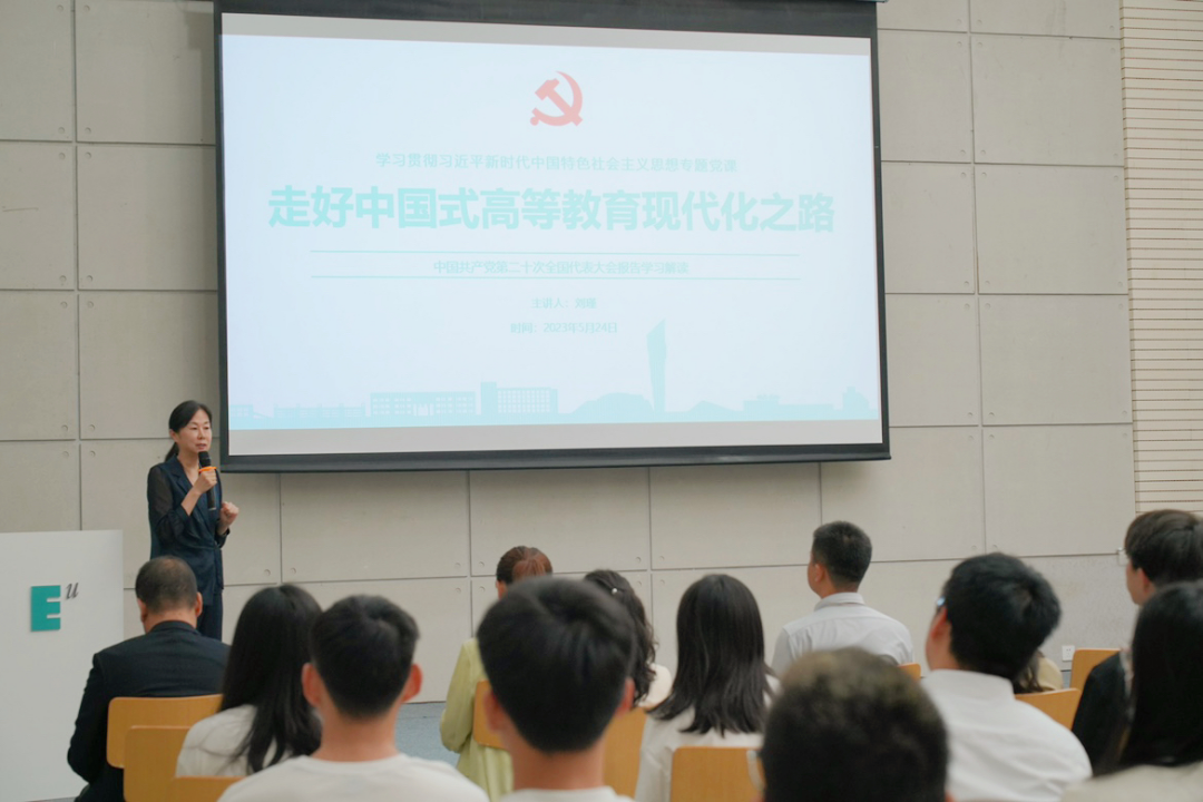 5月24日上午,我校党委副书记、校长刘瑾同志代表学校深入开展学习贯彻习近平新时代中国特色社会主义思想主题教育专题宣讲团,在大学生活动中心多功能厅为师生们带来了一堂生动的主题教育专题党课。本次党课的主题为“走好中国式高等教育现代化之路”,第四青年社区分党委的全体师生党员和入党积极分子共82人现场聆听了这场专题党课。课上,刘瑾同志分别从“什么是‘中国式现代化’”、 “为什么是‘中国式’现代化”、“中国式现代化‘...