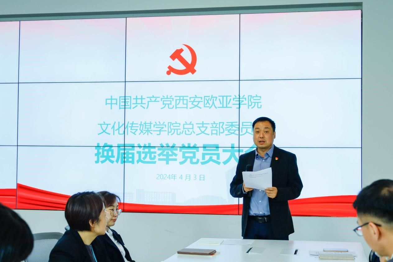 为进一步加强基层党组织建设,更好地发挥党组织的战斗堡垒作用,严格落实组织工作关于党组织换届有关规定,经上级党组织批复,4月3日中午,中共西安欧亚学院文化传媒学院总支部委员会如期召开换届选举党员大会。党员换届选举大会在庄严肃穆的国歌声中拉开帷幕。左伟同志代表上届党总支向全体党员作了工作报告,他在报告中全面回顾了5年来党总支各项工作的开展情况、所取得的成绩及存在的问题与不足。大会严格按照《选举办法》等有关规定,...