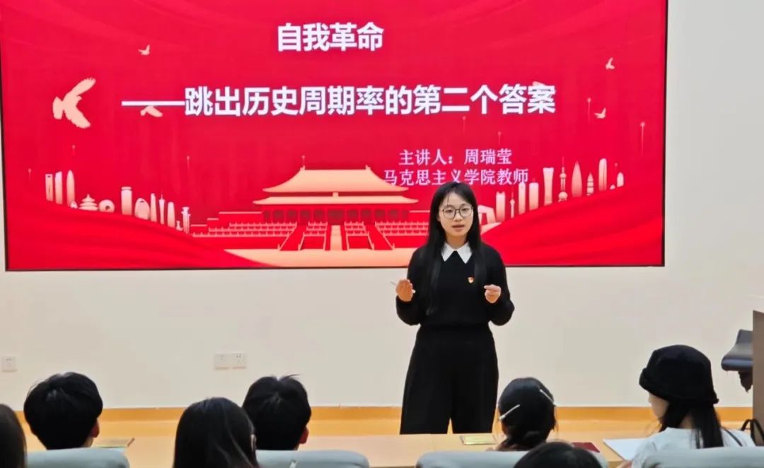 近日,第三青年社区分党委邀请我校马克思主义学院教师周瑞莹老师给2024下半年发展对象培训班学员开展了一场《自我革命——中国共产党跳出历史周期率的第二个答案》的专题党课,使学员们在学习了解历史发展内在规律的同时,深刻认识到中国共产党通过自我革命保持先进性和纯洁性,从而确保党和国家的事业沿着正确方向持续发展。 周瑞莹老师从理论逻辑、历史逻辑、实践逻辑三个维度,紧紧围绕勇于自我革命是马克思主义政党的政治品格、...