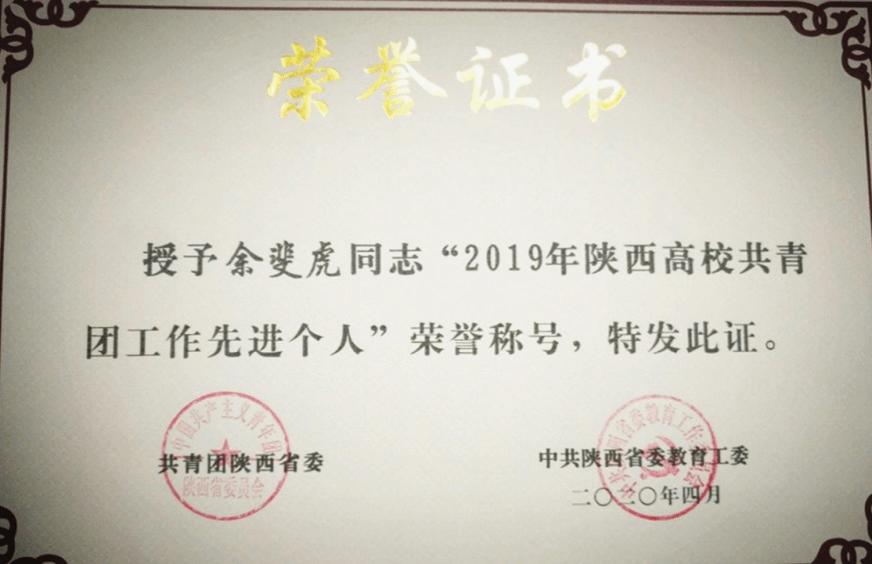 近日,共青团陕西省委、中共陕西省委教育工委联合下发了《关于2019年度陕西高校共青团工作考核结果的通报》(陕团联发〔2020〕10号),我校团委获得“陕西高校共青团大学生社会实践与志愿服务工作先进单位”,校长刘...