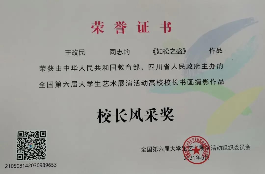 2021年5月12日由中华人民共和国教育部、四川省人民政府主办的全国第六届大学生艺术展演活动在历时8天的精彩竞赛角逐中于四川成都圆满落幕。经学校推荐、陕西省教育厅评选推送,西安欧亚学院名誉校长王改民的书法作品...