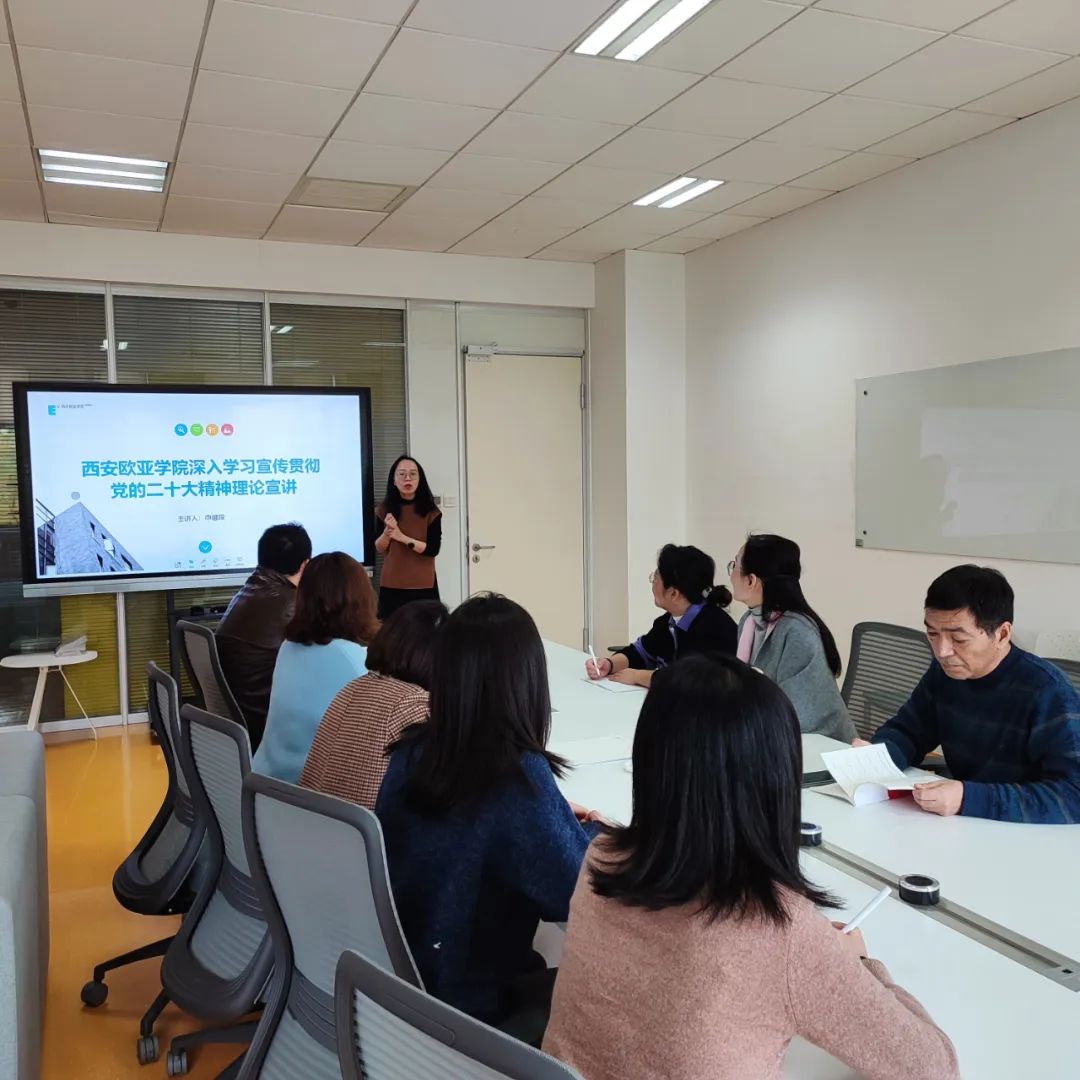 我校金融学院党总支为深入学习宣传贯彻党的二十大精神,引导教工党员准确领会把握党的二十大精神的思想精髓、核心要义,原原本本、原汁原味学习好党的二十大精神,引导教工党员把思想和行动统一到党的二十大确定的战略部署上来,根据《中共西安欧亚学院委员会关于印发<西安欧亚学院关于认真学习宣传贯彻党的二十大精神的实施方案>的通知》要求,成立领导小组,建立“总支牵头、支部落实”的工作机制,采取召开学习动员会,书记讲党课,...
