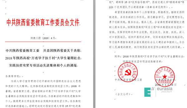 近日,中共陕西省委教育工委印发了《关于表彰2018年“万名学子扶千村”大学生暑期社会实践扶贫攻坚专项活动先进集体和个人的通报》,我校获得多项殊荣。 其中,我校获2018年“万名学子扶千村”大学生暑期...