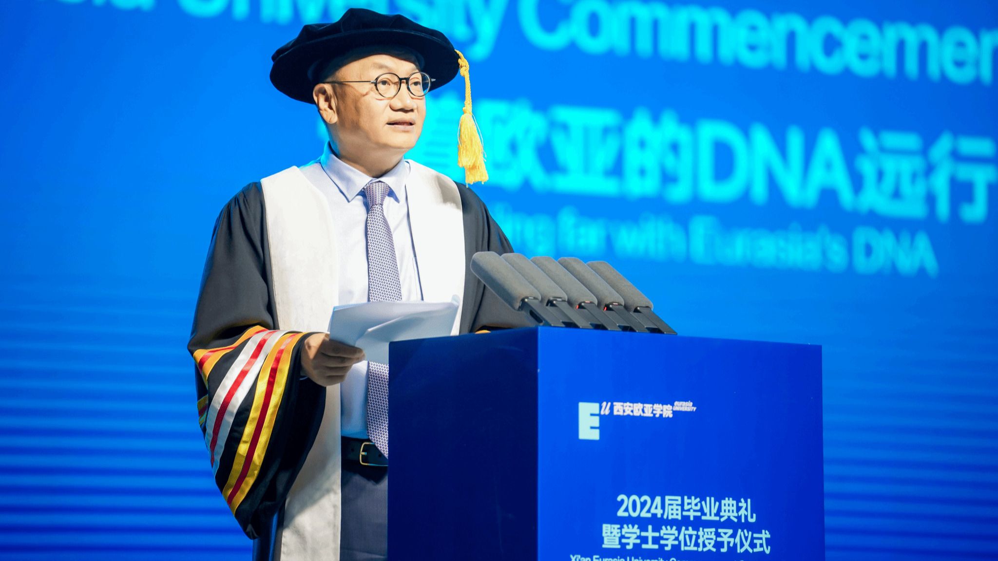 6月22日上午9点,西安欧亚学院2024届毕业典礼暨学士学位授予仪式在学校体育馆隆重举行。随着毕业典礼的开始,2024届毕业生即将奔赴山海,扬帆启航,在不同道路上熠熠生辉,迈向新的人生阶段。(图一)毕业典礼现场全景图学校党政领导、专家教授、各专业教师、校企合作单位领导、分院领导、职能处室领导、辅导员、校友和学生家长等出席了今天的毕业典礼。他们是青年学子茁壮成长的见证者,也是前途光明的祝福者。在现场热烈的掌声中国旗、...