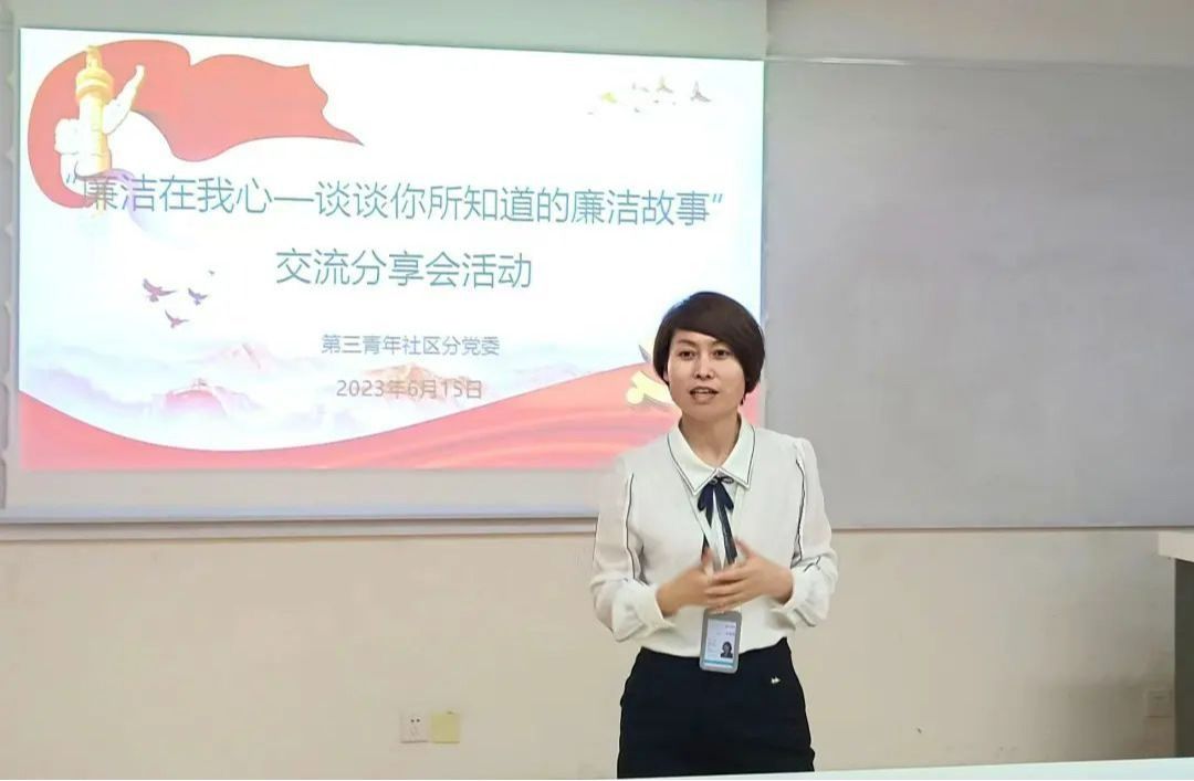 为深入学习贯彻党的二十大精神,加强新时代党风廉政建设,进一步营造风清气正的校园文化氛围,2023年6月15日第三青年社区分党委在西C-203教室举行以“廉洁在我心——谈谈你所知道的廉洁故事”为主题的廉洁故事分享会。“‘欲影正者端其表,欲下廉者先己身’。无论历史如何变迁,无论时代怎样发展,廉洁永远是时代的需要,正气永远是人民的期盼。作为新时代的大学生,我们需要的正是这种骨气,这种大气,这种精神气!”分享会现场,来自第三青年社区分党委八个党支部的10名学生代表围绕廉洁主题展开故事分享。...