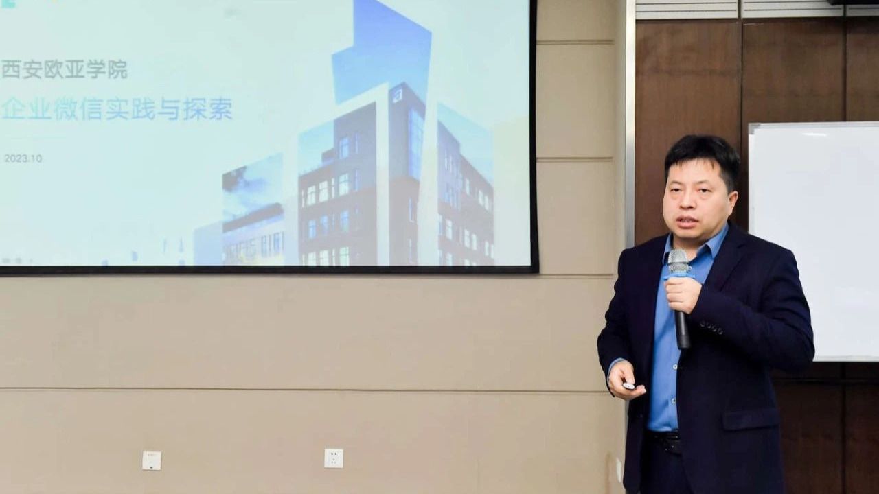 10月19日,“高校数字化转型实践研讨会”在西安欧亚学院召开,来自西安交通大学、长安大学、西北大学等五十余所高校信息化专家齐聚一堂,围绕着“企业微信如何助力高校数字化转型”主题进行了交流研讨。我校图文信息中心主任罗征代表学校向参加沙龙的各位专家和老师表示了欢迎。“高等教育数字化转型和发展,是扎实推进国家教育数字化战略行动的重要举措”,罗征提到,“‘数字化转型’自2020年起便成为西安欧亚学院未来六大战略重点工作之一,...
