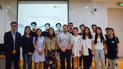 (图一)活动现场 (图二)owain老师做报告 (图三)互动环节 (图四)李冰洁老师做活动总结 (图五)赠送礼品 (图六)合影留念 2018年5月,我校物流贸易学院卡迪夫教学周系列活动再次展开。本周三...